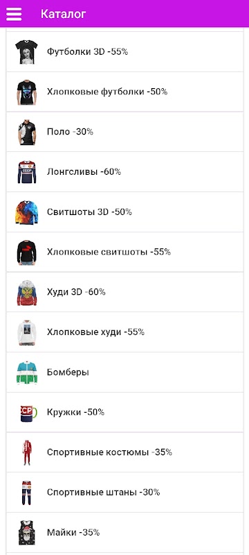 Категории включают в себя следующие виды одежды: