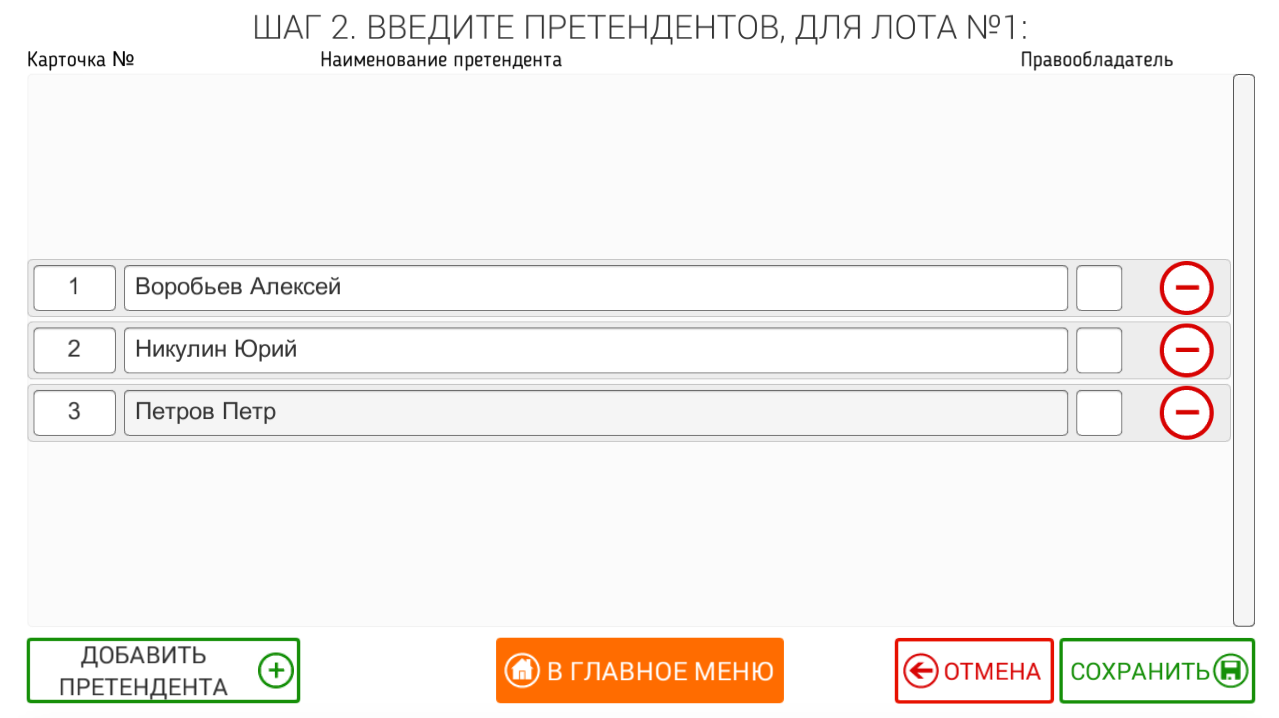 - программа позволяет аукционисту видеть всю картину хода аукциона, что позволяет исключить малейшую ошибку при проведении аукциона