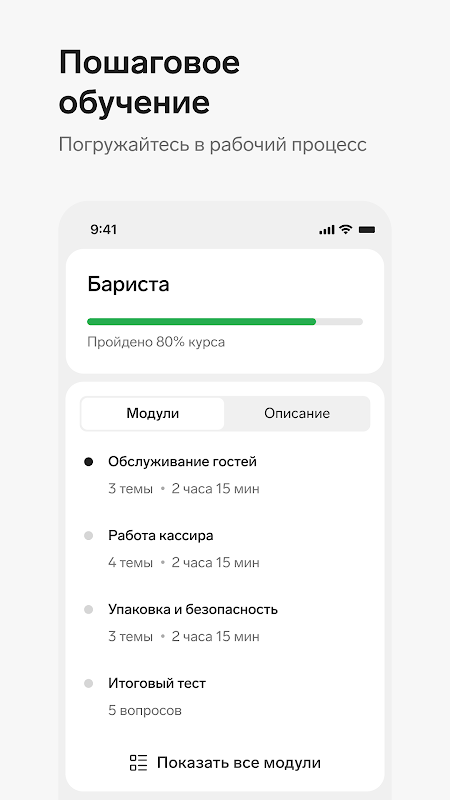 Kontur.Adaptation মোবাইল অ্যাপ্লিকেশন ব্যবহার করে নতুন কর্মীদের অভিযোজন এবং কর্মীদের প্রশিক্ষণ অপ্টিমাইজ করুন। সাধারণ ভিডিও টিউটোরিয়াল এবং উপস্থাপনাগুলি ইন্টার্নশিপের সময়কে সংক্ষিপ্ত করতে এবং পরামর্শদাতাদের উপর বোঝা কমাতে সাহায্য করবে।