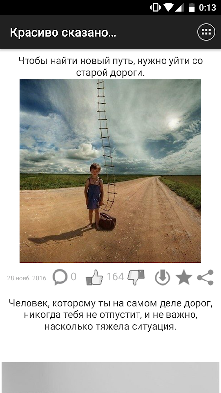 Понравившиеся записи можно комментировать и оценивать. Все понравившиеся картинки можно сохранять в галерее устройства в папке приложения. Ты можешь делиться записями с друзьями через социальные сети Facebook, Вконтакте, Одноклассники, Viber, WhatsApp а так же другие установленные на устройстве приложения. Ну и конечно, ты можешь оставлять лайки и сохранять записи в избранное.