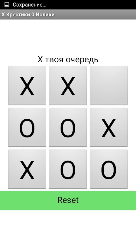 Крестики-нолики – это простая, но в то же время интересная игра для всех возрастов. В режиме "3x3" игроки по очереди ставят «X» или «0» в поле 3x3 клетки. Тот, кто первый разместит свои фигуры в горизонтальном, вертикальном или диагональном ряду, одержит победу.