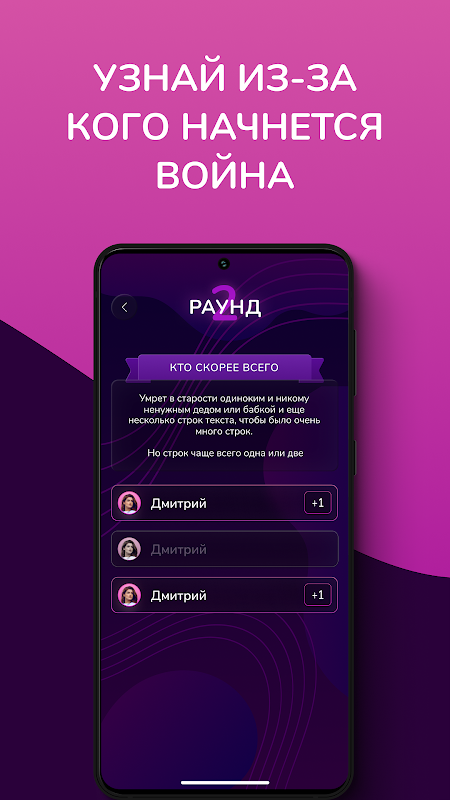 Это мобильная версия популярной игры "Кто скорее всего". Отвечай на вопрос Кто из нас станет...