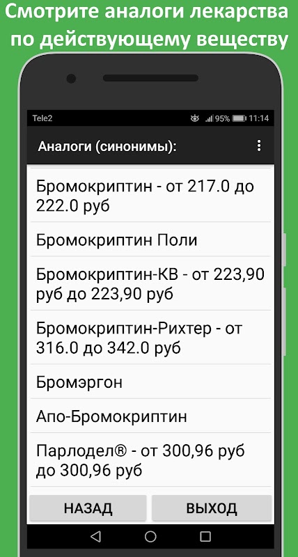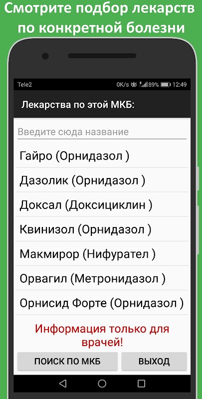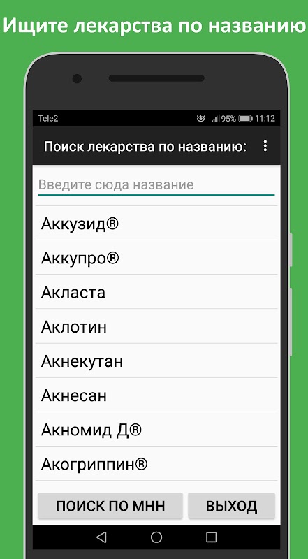 ВАЖНО: информация, отображаемая приложением, приводится для предварительного ознакомления с действием лекарственного средства. Перед применением любого лекарства необходимо проконсультироваться с лечащим врачом. Мы не несем ответственности за полноту и точность информации в данном справочнике.