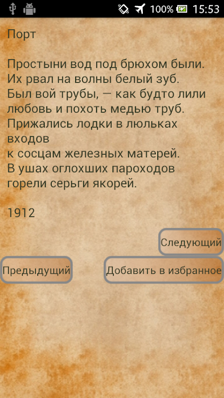 Возможность добавлять стихи и поэмы в список избранных, убирать из списка по отдельности и полностью очищать список.