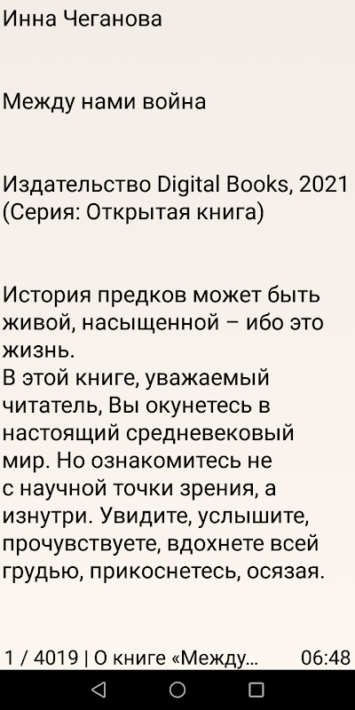 ডিজিটাল বই প্রকাশনা হাউস ধ্রুপদী সাহিত্যের কাজগুলিকে জনপ্রিয় করে তোলা এবং প্রারম্ভিক লেখকদের সমর্থনে নিযুক্ত রয়েছে। আমরা অ্যান্ড্রয়েড অপারেটিং সিস্টেমের উপর ভিত্তি করে মোবাইল ডিভাইসের জন্য অ্যাপ্লিকেশন আকারে বই প্রকাশ করি। একটি সাধারণ মেনু ব্যবহার করে, প্রতিটি পাঠক তাদের ডিভাইসের বৈশিষ্ট্য অনুসারে বইয়ের প্রদর্শন কাস্টমাইজ করতে পারে।
