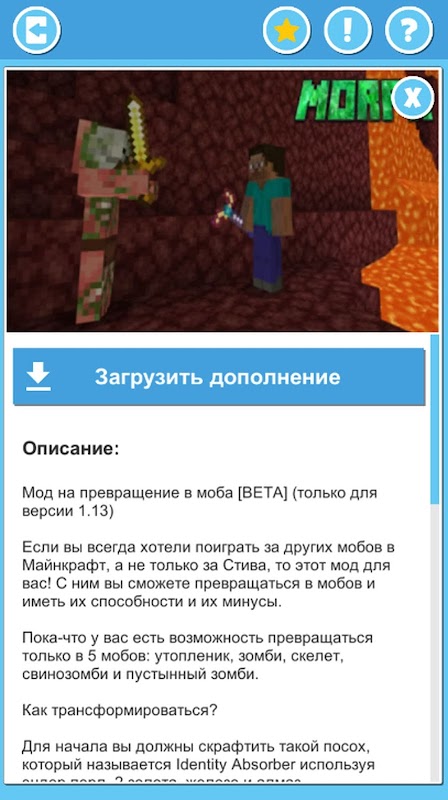জনগণের 1.12.2 এ পরিবর্তনের জন্য মোড সংযোজন সহ একটি আনুষ্ঠানিক অ্যাপ্লিকেশন। এই অ্যাপ্লিকেশনটি কোনওভাবেই মূল গেমটির বিকাশকারীদের সাথে সম্পর্কিত নয় যার জন্য তারা উদ্দেশ্য করে।
