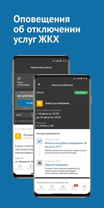 বিদ্যুৎ বিভ্রাট, গরম, ঠান্ডা এবং গরম জল সম্পর্কে জানুন। অ্যাপ্লিকেশনটি সর্বদা সমগ্র শহরের মেরামতের কাজের আপ-টু-ডেট তথ্য সরবরাহ করে। আপনার আগ্রহের ঠিকানাগুলিতে সদস্যতা নিন এবং আপনার বাড়িতে পরিকল্পিত এবং জরুরী শাটডাউন সম্পর্কে তথ্য সহ শব্দ বিজ্ঞপ্তি পান।