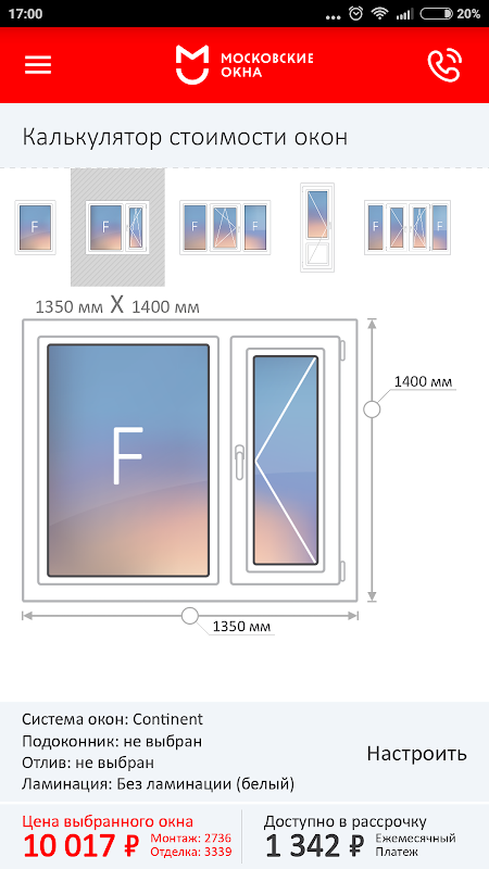 В приложении вы так же найдете подробную информацию об оконных системах, которые предложены к расчету, их несколько: от бюджетных до самых изысканных.