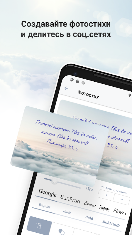 • ফটোস্টাইহস - আপনার নিজের স্বাদে পাঠ্য এবং পাঠের ফন্ট সম্পাদনা করে একটি ফটোতে একটি শ্লোক বা উত্তরণকে বাড়িয়ে দেওয়ার ক্ষমতা, এবং তারপরে বন্ধুদের সাথে বন্ধুদের সাথে ভাগ করুন।
