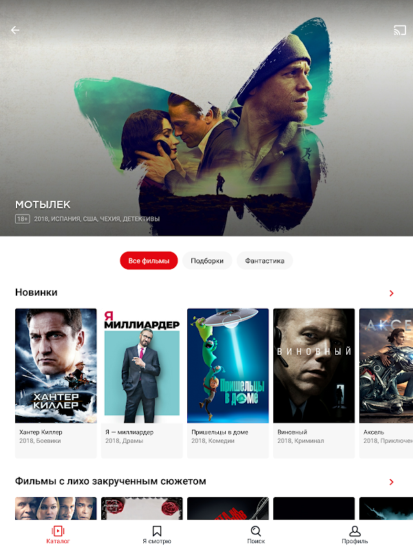• Блокбастеры и премьеры с возможностью выбора звуковых дорожек, субтитров и качества видео.