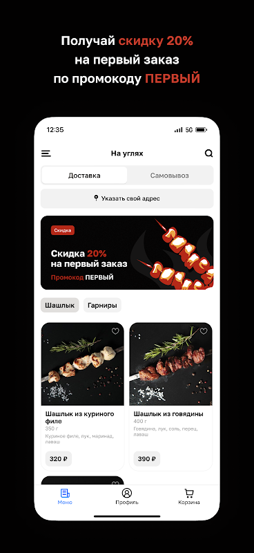 "অন চারকোল • ফুড ডেলিভারি" আপনার শহরে খাবার সরবরাহের জন্য একটি অ্যাপ!