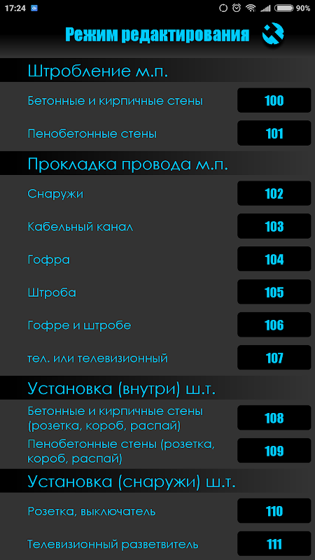 রুমে বৈদ্যুতিক ইনস্টলেশন খরচ হিসাব জন্য ব্যক্তিগত মাস্টার তাড়িতী জন্য প্রোগ্রাম ডিজাইন। এই প্রোগ্রাম দিয়ে আপনি আপনার গ্রাহকদের প্রদান করা কাজ খরচ নিরূপণ করতে পারেন। সব প্রশ্ন ও পরামর্শ জন্য, আমাদের ই-মেইল লিখুন দয়া করে। আমাদের অ্যাপ্লিকেশন, বিজ্ঞাপন অভাব হবে।