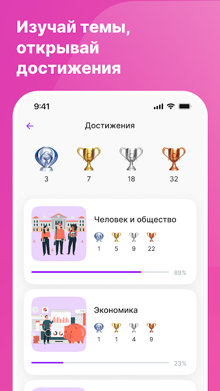 এই অ্যাপটি সামাজিক শিক্ষায় ইউনিফাইড স্টেট পরীক্ষা (USE) এবং বেসিক স্টেট পরীক্ষার (BSE) প্রস্তুতির জন্য আদর্শ। সম্পূর্ণ তত্ত্বটি বিষয় এবং বিভাগে বিভক্ত, যেমন মানুষ এবং সমাজ, অর্থনীতি এবং সামাজিক সম্পর্ক। প্রতিটি পাঠ্য এবং নিবন্ধ ব্যবহারিক অনুশীলন দ্বারা পরিপূরক: আপনার জ্ঞান পরীক্ষা এবং শক্তিশালী করার জন্য অ্যাসাইনমেন্ট এবং পরীক্ষা।