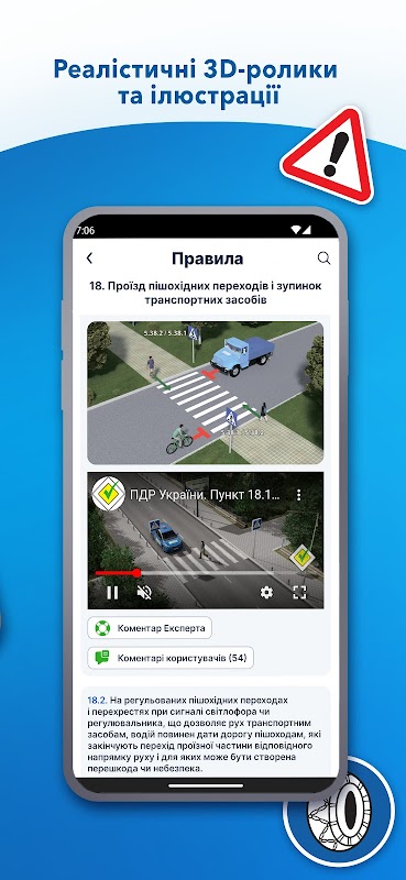 ট্রাফিক নিয়মের সবচেয়ে গুরুত্বপূর্ণ পয়েন্টগুলিতে বিস্তারিত 3D চিত্র রয়েছে। চমৎকার স্পষ্টতার জন্য ধন্যবাদ, যা পড়া হয় তা সহজে অনুভূত হয় এবং সহজেই মনে রাখা যায়। ইউক্রেনের মন্ত্রীদের মন্ত্রিসভার সিদ্ধান্ত অনুসারে ট্রাফিক নিয়মে করা সমস্ত পরিবর্তন এবং সংযোজন রঙিনভাবে হাইলাইট করা হয়েছে এবং সংখ্যা এবং তারিখ সহ পাঠ্যে স্থাপন করা হয়েছে। পৃথক পয়েন্টে থাকা চিহ্নগুলি ব্যতীত, রাস্তার চিহ্নগুলি পাঠ্যে উপযুক্ত স্থানে স্থাপন করা হয়েছে, যা আপনাকে দ্রুত এবং কার্যকরভাবে উপাদানটি শিখতে দেয়। 2025 সালের সর্বোচ্চ মানের ট্রাফিক নিয়ম!