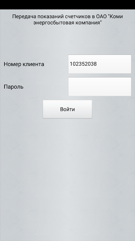 Для входа используйте тот же Номер клиента и Пароль, что и для входа в Личный кабинета клиента https://cabinet.komiesc.ru/cabinet . Сохранённый пароль можно удалить в настройках.