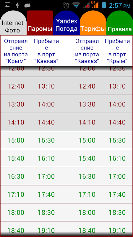 Также есть offline-расписание паромов, цен и правил перевозки.