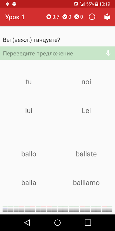 স্ক্রিনের শব্দ থেকে আপনাকে ইতালীয় ভাষায় অনুবাদ করতে হবে।