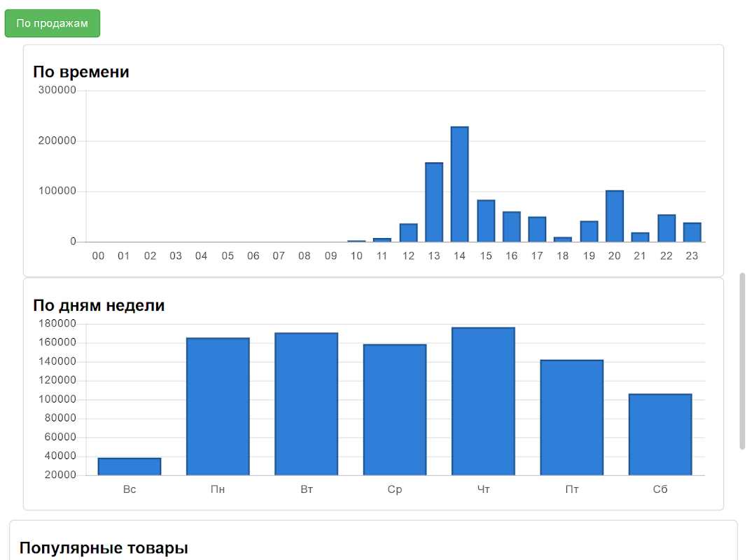 Выручка, средний чек, анализы по продажам, сотрудникам, товарам, клиентам, а также ABC анализ, помогут владельцу принять правильное решение.
