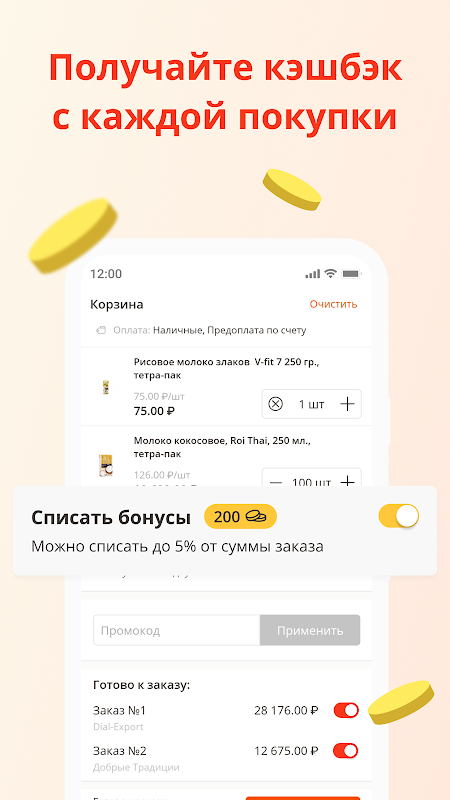 ক্যাটালগে আপনি 100,000 টিরও বেশি পণ্য পাবেন: খাদ্য, পানীয়, গৃহস্থালীর পণ্য, গৃহস্থালীর রাসায়নিক, পোষা প্রাণীর সরবরাহ, HoReCa-এর জন্য ভোগ্য সামগ্রী এবং আরও অনেক কিছু।
