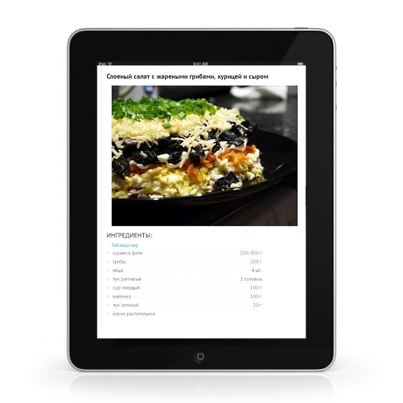 Простые салаты стали неотъемлемой частью нашего ежедневного рациона. Для разнообразия рациона желательно каждый день готовить новый салат. В нашем приложении вы найдете вкусные рецепты салатов как на праздник, так и ежедневного употребления. Это такие популярные блюда, как салат цезарь или мимоза. Для любителей морепродуктов предлагаем рецепты салатов с креветками, кальмарами, или, наиболее популярный, крабовый салат. Вы сможете приготовить как легкие салаты, так и оригинальные праздничные салаты на день рождения или Новый год.