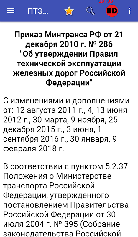 Правила технической эксплуатации железных дорог Российской Федерации (ПТЭ ЖД РФ) утверждены приказом Министра транспорта РФ И.Е.Левитина N 286 от 21 декабря 2010 г.