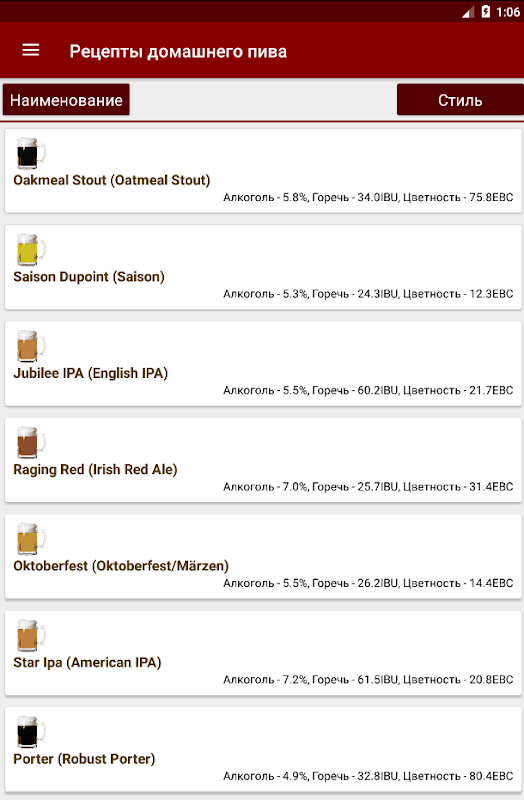 Интегрировано руководство по стилям BJCP, рецепты приведены в соответствие со стандартом