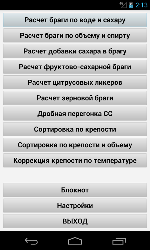 পছন্দসই পরামিতিগুলির উপর ভিত্তি করে (ম্যাশের আয়তন, শক্তি), এটি ম্যাশের জন্য প্রয়োজনীয় পরিমাণ জল, চিনি এবং খামির গণনা করে।