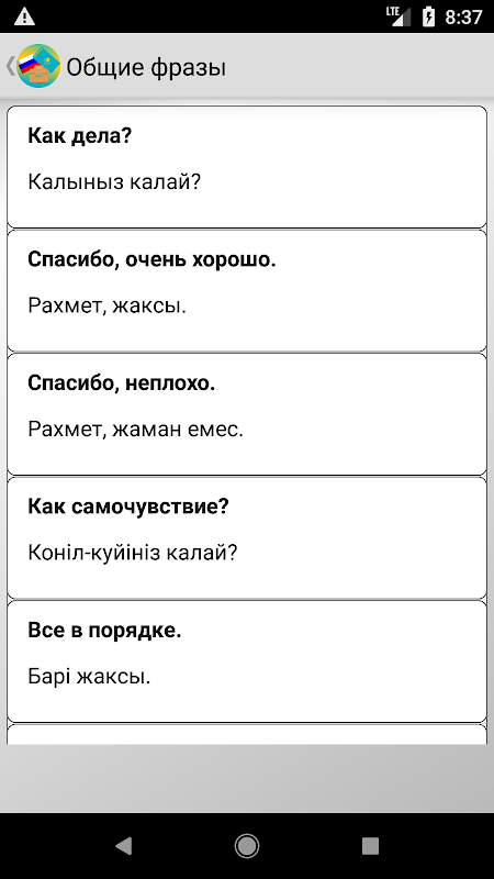 Russian-Kazakh phrase book for tourists ✈ contains a set of standard phrases
