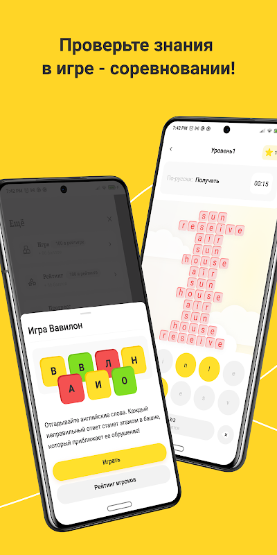 "ব্যাবিলন" একটি আর্কেড গেম যা আপনাকে অধ্যয়ন করা শব্দগুলিকে প্রশিক্ষণের পাশাপাশি আপনার শব্দভাণ্ডারকে পুনরায় পূরণ করতে দেয়। প্রতিটি শব্দের জন্য, শব্দ এবং এর অনুবাদের মধ্যে একটি গভীর সংযোগ তৈরি করতে একটি সহযোগী সিরিজ সেট করা হয়েছে।