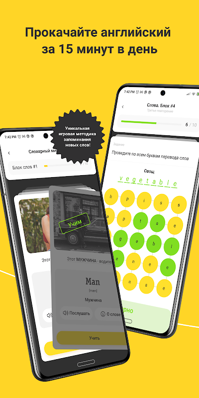 কার্যকরভাবে শব্দ মুখস্ত করতে, অ্যাপ্লিকেশনটি 5টি ভিন্ন গেম মেকানিক্স প্রয়োগ করে। প্রতিটি শব্দের সাথে একটি বিষয়ভিত্তিক চিত্র, উচ্চারণ এবং পাঠ্য উদাহরণ রয়েছে। আপনি প্রদত্ত বিষয়গুলিতে প্রস্তাবিত শব্দগুলি শিখতে পারেন বা অধ্যয়নের জন্য আপনার নিজের শব্দের তালিকা তৈরি করতে পারেন।