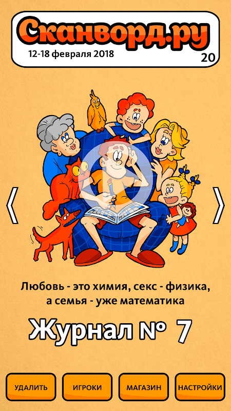 অ্যাপ্লিকেশানের স্ক্যানওয়ার্ডগুলি বৈচিত্র্যময় - সহজ এবং আরও জটিল, ফটোগ্রাফ সহ, ক্লাসিক প্রশ্ন বা সহযোগী বিষয়গুলি সহ: "একটি শব্দ" বা "একটি শব্দ, দুটি শব্দ", যেমন এল্ডার ফার টিপস। যে কোনও পত্রিকায় একটি ইংরেজি-রাশিয়ান স্ক্যানওয়ার্ড এবং একটি "হোলি" থাকে, আমি আশা করি আপনি বুঝতে পারবেন কেন এটি বলা হয়েছিল। প্রতিটি পৃষ্ঠায় আপনাকে আমাদের প্রফুল্ল পরিবার থেকে একটি চরিত্র দ্বারা অভ্যর্থনা জানানো হয়। আমাদের সাথে যোগ দাও!