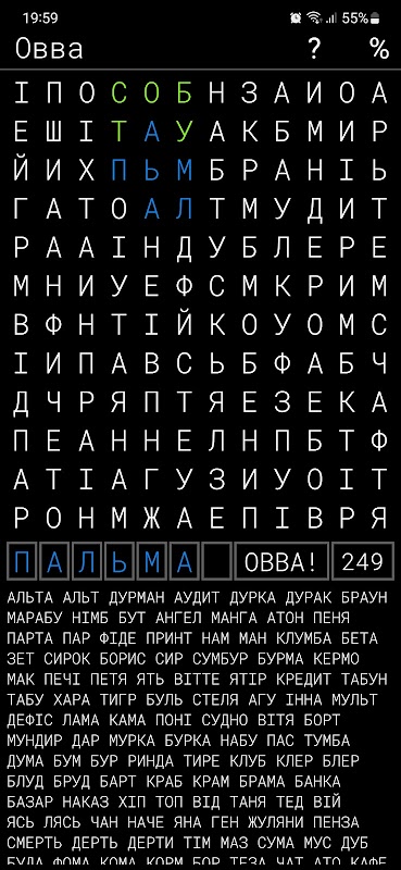 স্লোভভা একটি দৈনিক ক্রসওয়ার্ড ধাঁধা। প্রতিদিন আপনি 144টি চিঠির একটি সেট পাবেন। আপনার কাজ হল তাদের মধ্যে যথাসম্ভব 3 থেকে 7 অক্ষরের দৈর্ঘ্য সহ অনেকগুলি বাস্তব ইউক্রেনীয় শব্দ খুঁজে বের করা। প্রতিটি খেলোয়াড় একই দিনে চিঠির একটি অভিন্ন সেট পায়। তাই আপনি আপনার বন্ধু এবং পরিবারের সাথে প্রতিদ্বন্দ্বিতা করতে পারেন। এই গেমটির প্রধান বৈশিষ্ট্য হল স্টার মোড যেখানে আপনি সীমাহীন গেম খেলতে পারবেন।
