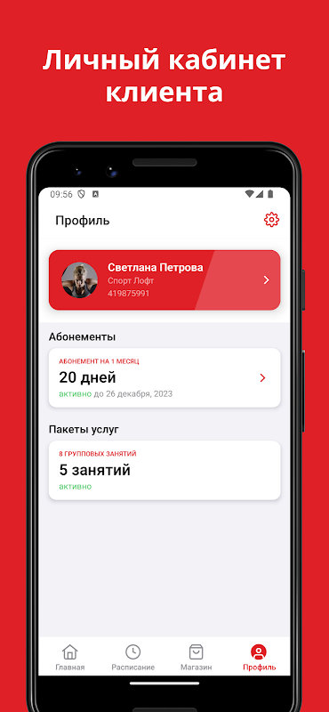 ক্লায়েন্টদের জন্য মোবাইল অ্যাপ্লিকেশন স্পোর্ট লফট - পুরো পরিবারের জন্য একটি স্পোর্টস ক্লাব।
