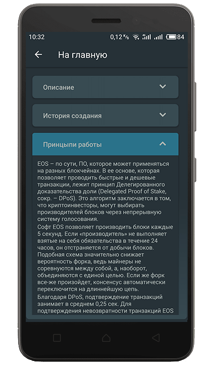 Так же раскрывается информация о принципах и особенностях работы для каждой из 15 представленных в приложении криптовалют, Вы узнаете о функциональных свойствах, правилах и функционировании популярных криптовалют.