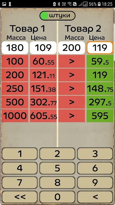 মূল্য তুলনাকারী - স্বয়ংক্রিয়ভাবে গণনা করে এবং দেখায় কত 1 লিটার, 1 কিলোগ্রাম, 1 ইউনিট খরচ।