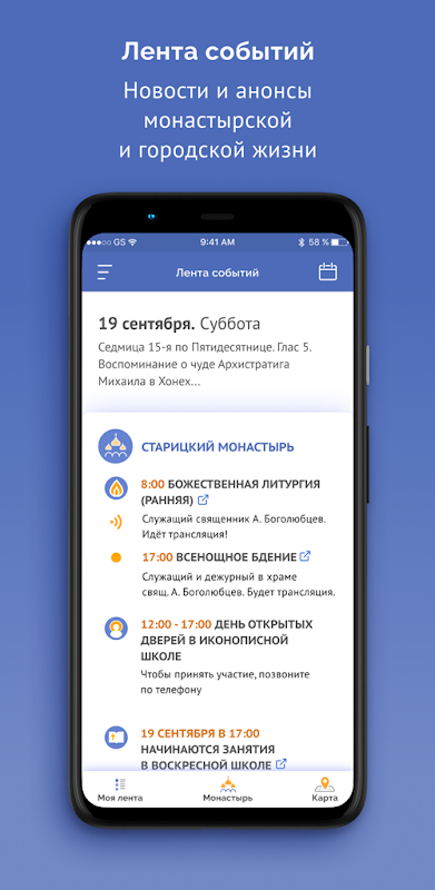 এটি ভ্রমণ ভ্রমণ এবং সংবাদ, মঠ এবং শহর জীবনের ইভেন্টগুলির ব্যবহারকারী-কনফিগারযোগ্য ফিড উভয়ই।