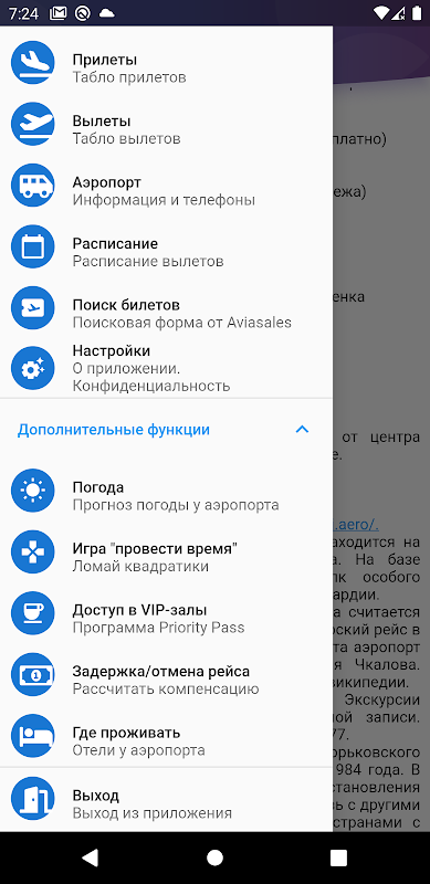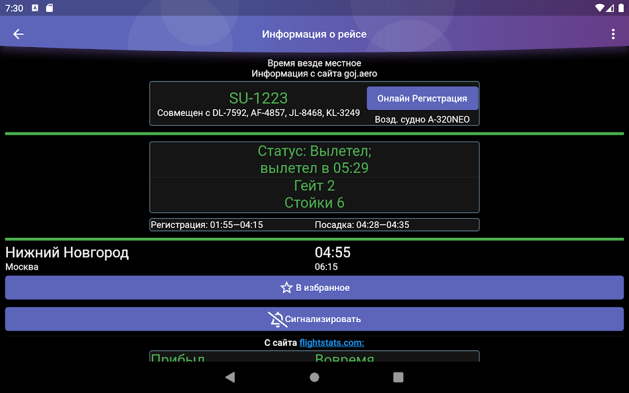 স্ট্রিগিনো বিমানবন্দরে (নিঝনি নোভগোরোড) বিমানের প্রস্থান এবং আগমনের অবস্থার তথ্য প্রদান করে একটি অনানুষ্ঠানিক অ্যাপ্লিকেশন। পাশাপাশি ফ্লাইট সময়সূচী এবং অন্যান্য দরকারী তথ্য। একটি বর্ধিত তথ্য পর্দায় স্কোরবোর্ড লাইন প্রসারিত করা সম্ভব।