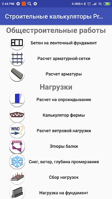 নির্মাণ ক্যালকুলেটর ProstoBuild বিভিন্ন বিষয়