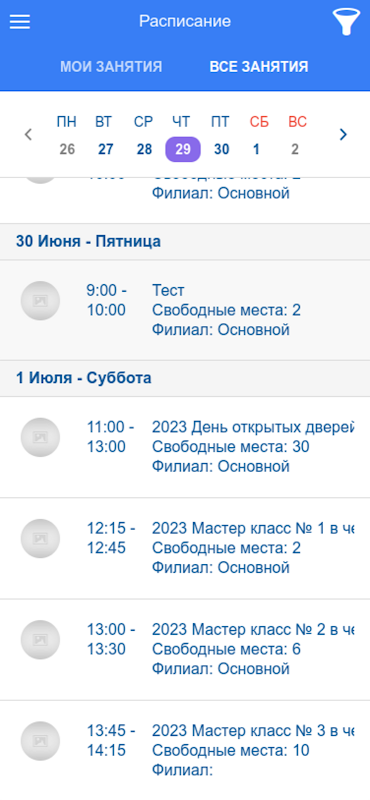 অ্যাপ্লিকেশনটি আপনাকে স্টুডিওতে সম্পূর্ণ সময়সূচী বা শুধুমাত্র আপনার পাঠগুলি দেখতে দেয়। আপনি সক্রিয় সাবস্ক্রিপশনে ক্লাসের ভারসাম্য, ক্লাসের জন্য অর্থপ্রদানের লেনদেন, হোমওয়ার্ক, ক্লাসের ফলাফল, উপস্থিতি এবং হোমওয়ার্ক সমাপ্তির একটি চিহ্ন দেখতে পারেন। বর্তমান ব্যালেন্স, খবর, পরিচিতি, দরকারী শিক্ষা উপকরণ এবং আরও অনেক কিছু সম্পর্কে তথ্য রয়েছে।