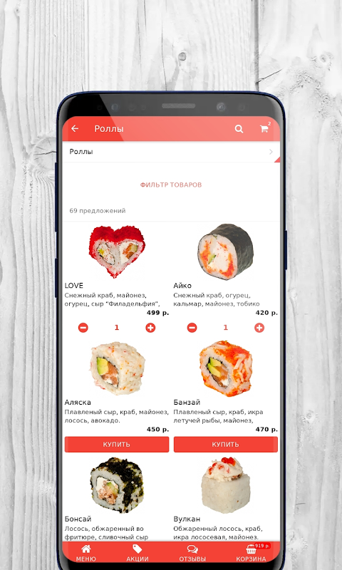 মেনুতে traditionalতিহ্যবাহী জাপানি খাবার - সুশী, সাশিমি, রোলস, স্যুপ এবং হট ডিশের পাশাপাশি ইউরোপীয়, ওরিয়েন্টাল খাবার এবং সুস্বাদু পিজ্জার খাবার রয়েছে। অঞ্চলের মধ্যে আপনার বাড়ি এবং অফিসে দ্রুত বিতরণ (পুশকিন এবং শেহেলকভস্কি জেলা, ইভানটিভকা, ফ্রিয়াজিনো, মাইটিশচি এবং কোরোলেভ)।