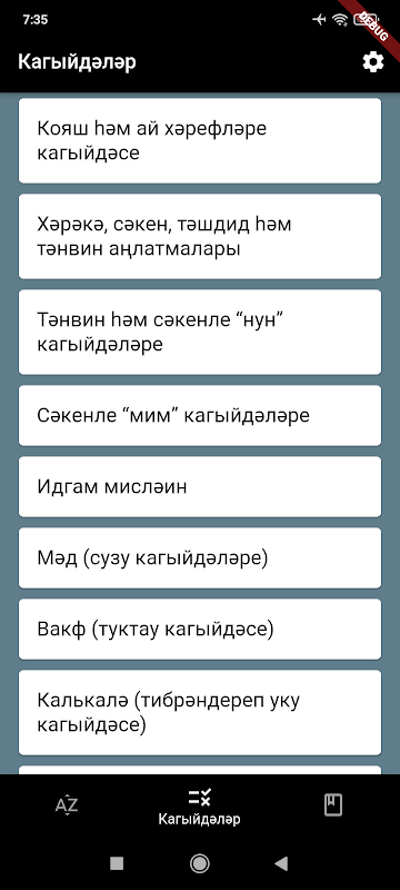 রাশিয়ান এবং তাতার ভাষায় আবেদন। আবেদনটি আহমেত হাদি মাকসুদির "মুআল্লিম সানী" পাঠ্যপুস্তকের উপর ভিত্তি করে তৈরি করা হয়েছে।