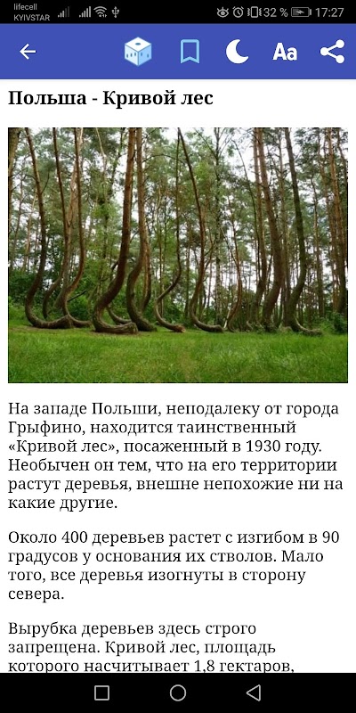 অ্যাপ্লিকেশন নাইট মোড এবং অফলাইন মোড সমর্থন করে (ইন্টারনেট ছাড়া), একটি অনুসন্ধান আছে। প্রিয় নিবন্ধ ফেভারিটে যোগ করা যেতে পারে, সেইসাথে বন্ধুদের সাথে শেয়ার করুন।
