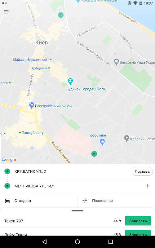 ভ্রমণের রুট উল্লেখ করুন এবং অ্যাপ্লিকেশনটি একবারে কিয়েভ শহরের বেশ কয়েকটি পরিষেবাতে ব্যয় গণনা করবে।