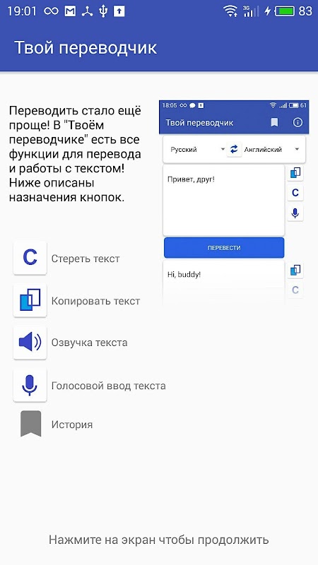 В "Твоём переводчике" есть все функции для перевода и работы с текстом, приятный и удобный интерфейс!
