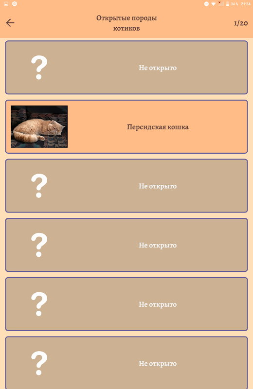 আপনি কি এই সুন্দর বিড়ালের 20 জাতের পুরো সংগ্রহটি একত্রিত করতে পারেন? পরীক্ষায় পাসের ফলস্বরূপ, বিড়ালের জাতের নাম ছাড়াও, আপনাকে একটি বিবরণও দেওয়া হয় যাতে আপনি এটি আপনার চরিত্রের সাথে তুলনা করতে পারেন। ফলাফলগুলি বন্ধু বা প্রিয়জনের সাথে ভাগ করুন, আপনি কত সুন্দর তা দেখে তাদের আনন্দ করতে দিন!