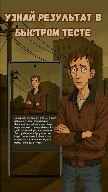 দুর্বলদের কোন স্থান নেই! এটি শুধুমাত্র একটি পরীক্ষা নয়, একটি সম্পূর্ণ ক্রিয়া যেখানে আপনি আপনার শক্তি পরীক্ষা করেন। আপনি কি আপনার নিজের জন্য দাঁড়াতে প্রস্তুত, জগাখিচুড়ি বাছাই করতে, নাকি আপনি অজুহাত তৈরি করবেন? 🕶️ প্রতিটি প্রশ্ন অ্যাসফল্টের উপর একটি চ্যালেঞ্জের মত, এবং শুধুমাত্র আপনি সিদ্ধান্ত নিন কিভাবে কথোপকথন চালিয়ে যেতে হবে। আপনার বন্ধুদের সাথে পরীক্ষা দিন, ফলাফলের তুলনা করুন এবং খুঁজে বের করুন কে সত্যিই ভিড়কে শাসন করে! 🔥