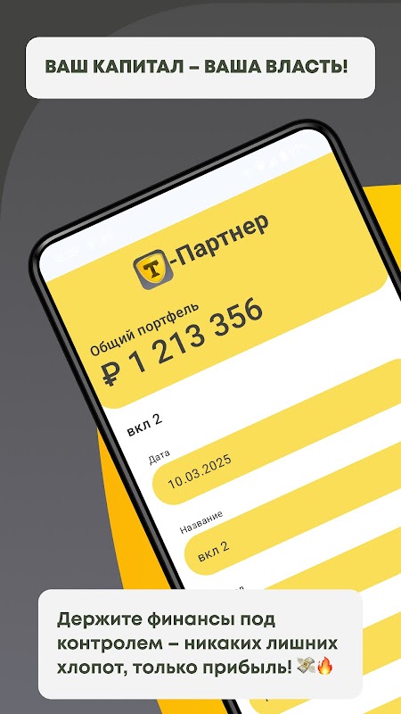 📈 আপনার মূলধন বুদ্ধিমানের সাথে পরিচালনা করুন এবং টি-পার্টনারের সাথে আপনার আর্থিক লক্ষ্য অর্জন করুন!