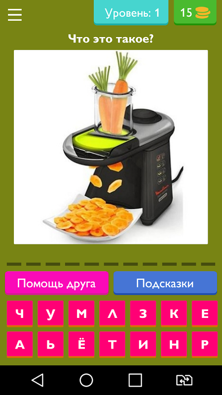 Очень интересная и увлекательная викторина. Суть которой что бы игрок угадал название бытового кухонного прибора по картинке. Игра увлекательна тем, что подходит абсолютно каждому, будь это ребёнок или взрослый. Для взрослых это покажется очень легко, но для детей возможно будет не простой задачей.