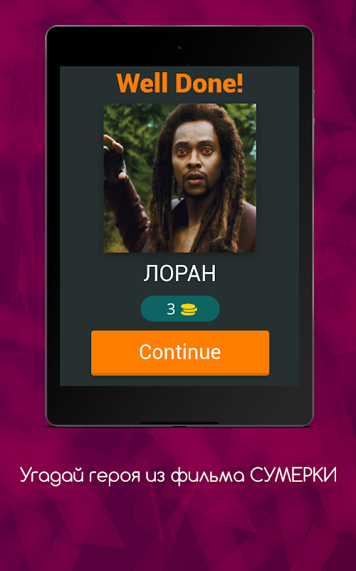 Викторина по всеми известному фильму Сумерки. В которой вам нужно будет угадать героев. В игре взяты не все персонажи. На данный момент 37 уровней. Остальные будут добавляться поэтапно.
