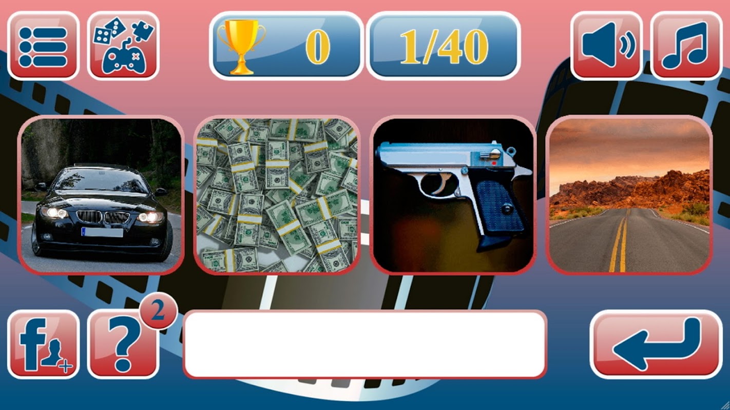 গেমটিতে 50টি আকর্ষণীয় স্তর রয়েছে। প্রতিটি স্তরে, স্ক্রিনে 4টি ছবি প্রদর্শিত হয়: 2টি খোলা ছবি এবং 2টি বন্ধ। যদি দুটি ছবি থেকে স্পষ্ট হয় যে এটি কি ধরনের চলচ্চিত্র, সে উত্তরের ক্ষেত্রে শিরোনাম লিখতে পারে এবং সঠিক উত্তরের জন্য 4 পয়েন্ট পেতে পারে। যদি দুটি ছবি যথেষ্ট না হয়, আপনি ইঙ্গিত বোতামে ক্লিক করতে পারেন এবং একটি 3টি ছবি খুলবে, যাতে প্লেয়ারটি 3 পয়েন্ট অর্জন করতে পারে। যখন আপনি আবার ইঙ্গিতটিতে ক্লিক করেন, 4টি ছবি খোলে এবং প্লেয়ারটি 2 পয়েন্ট অর্জন করে। আপনি যদি 4 টি ছবি থেকে ফিল্মটি অনুমান করতে না পারেন, তাহলে আপনি চিট শীট বোতামটি আরও দুবার ব্যবহার করতে পারেন, তারপর আপনি উত্তর শব্দটি তৈরি করে এমন অক্ষরগুলির একটি সেট দেখতে পারেন। কিন্তু ইঙ্গিতটিতে প্রতিটি ক্লিকের সাথে, প্লেয়ার আরেকটি পয়েন্ট হারায়। খেলা শেষে, আপনি অর্জিত মোট পয়েন্ট দেখতে সক্ষম হবে.